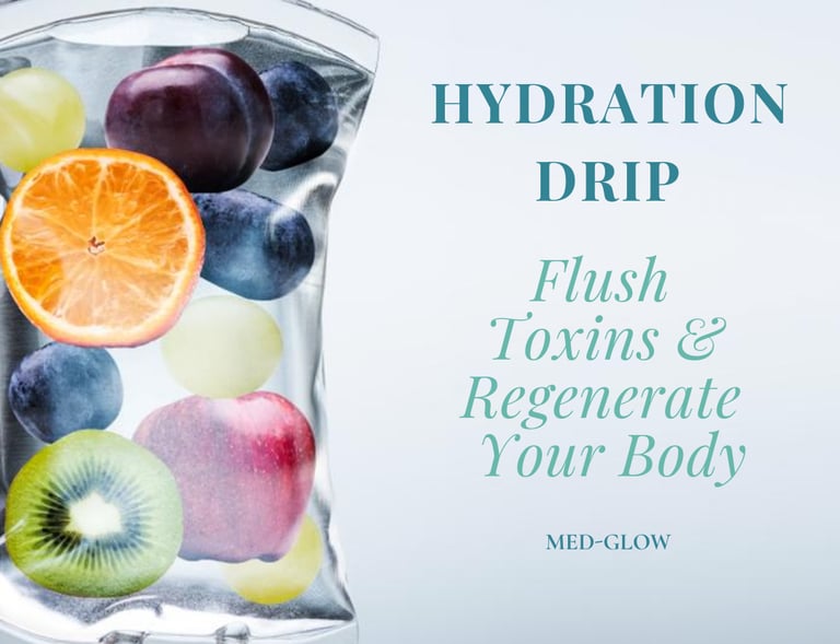 Rehydrate and recharge with vitamin-packed IV drips designed for you. Benefit from Myers Cocktail, Radiance Revial, Renew Her, Burn Boost, Recharge Drip, Endura Boos & Banana Bag and more.