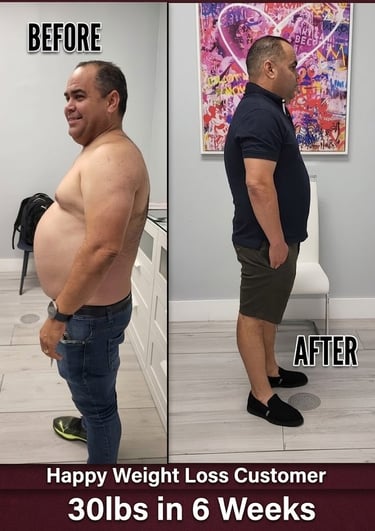 My wife used to make fun of my belly fat. I tried doing more cardio but couldn't keep up because I have a spine problem. A friend of mine suggested I try weight loss shots with Revitalize 305. He just gave me the solution to my problem within a blink of an eye. I have been keeping up with my weight loss shots package and plan from Revitalize 305 and it's been nothing but positive results. I have lost over 25 pounds of belly fat in less than 4 weeks. Thanks!